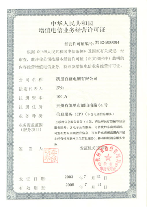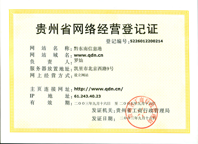 貴州省網絡經營登記證
