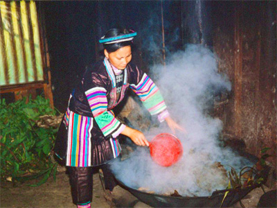 洗藥浴是從江瑤族同胞的傳統習俗,藥浴既可健身、潔體,又可防病、治病。在瑤寨,家家戶戶都有兩只大木桶,一只專供藥浴用,另一只用來接盛自來水。瑤寨人們用楠竹做水枧,把泉水從山上引到家里。農歷每月初一、初六、十一、十六、二十一、二十六 是"消災"日,在"消災"日里,全家老少都要洗藥浴。由于定期洗藥浴,瑤族同胞少生病、多長壽,瑤族婦女生小孩后無需坐月子,泡幾次藥浴后就可下地干活。在瑤寨洗藥浴,客人先洗,然后按先男后女、先老后幼的次序逐一洗浴。每輪換一個人,要重新換一次藥水。藥浴后,全身大汗淋淋,消除疲勞,舒精活絡,一身輕松。 |