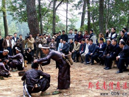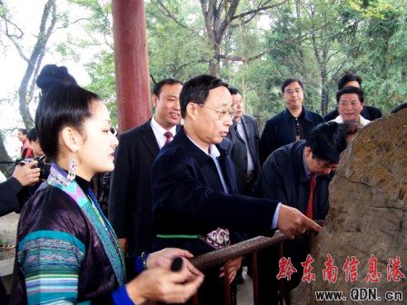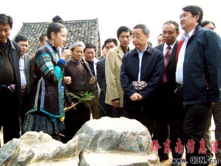 圖:代省長林樹森同志在州、縣領導的陪同下,考察“中國最后一個槍手部落”岜沙