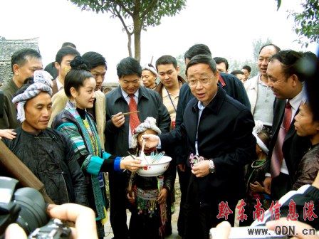 省委副書記、代理省長林樹森與村干和群眾代表親切的交談,問寒問暖,還饒有興致的觀看了岜沙苗族蘆笙舞、小黃侗族大歌等節目表演。