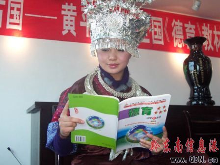 圖:一位苗家女孩在閱讀該課本