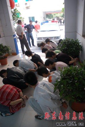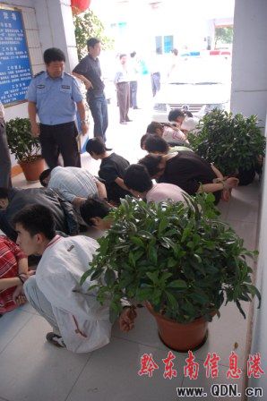 圖:蹲著的是被抓回警局的“蠱惑崽”。