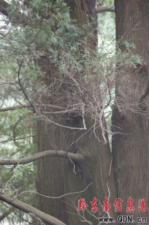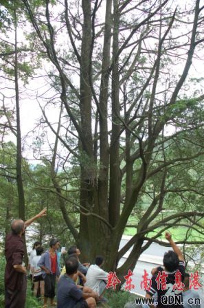 當林業部門組織當地森林植物檢疫部門及專家到達朗利村時,村民們正圍坐在樹根下商議為古樹治病的相關事宜。據村民介紹,該樹自去年3月以來,枝頭便出現了枯萎癥狀。記者觀察,該村高約50米,樹干直徑約3米,根部衍生出的小樹遍布四周。舉頭望去,其樹干枝頭部分已枯萎,大有蔓延之勢。村民告訴記者,這株古柏樹至少已有1000年歷史,是村中唯一的古樹,村民們將其視為“寶貝”。此前三凱高速公路設計方還為避免傷及古樹,還給其讓道。但自前年以來,一年四季常綠的枝頭便出現了枯萎現象,到今天其一旁樹枝綠色全無,甚至自然斷下。