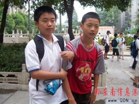 圖:放學(xué)后,同班同學(xué)扶著他走出校園