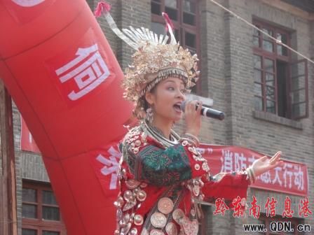 臨結(jié)束時(shí),阿幼朵深情地說:“今天又回到魂?duì)繅?mèng)系的故鄉(xiāng)為大家唱歌,心里非常激動(dòng)!在去年為榮幸地被團(tuán)省委和省公安消防總隊(duì)聘請(qǐng)為“貴州省消防青年志愿者形象大使”,使得我又了更多了解消防,參與消防的機(jī)會(huì)。就在前不久,為參觀了貴州消防教育館,其中有一個(gè)展區(qū)陳列著十多起發(fā)生在黔東南州苗鄉(xiāng)侗寨的特大火災(zāi)的圖片,大火的無情,災(zāi)后的廢墟,阿婆無助的眼神,深深刺痛了我的心。這些曾經(jīng)哺育我們苗家兒女成長(zhǎng)的家園,卻由于一時(shí)的疏忽,用火用電不慎而毀于一旦。消防部門的同志告訴我,為了做好苗鄉(xiāng)侗寨的消防安全保衛(wèi)工作,他們制定了“三大法寶”,“五改”,“四個(gè)結(jié)合”,“八個(gè)落實(shí)”等措施,還經(jīng)常走鄉(xiāng)串寨幫助老鄉(xiāng)們建沼池,建消防水池,特別是冬季因?yàn)殡S著用火用電,照明取暖的增多,將增加發(fā)生火災(zāi)的可能。這些消防官兵心系苗鄉(xiāng)侗寨安全和強(qiáng)烈的責(zé)任心深深的感染了我,作為消防青年志愿者的形象大使和苗鄉(xiāng)侗寨的兒女,我更應(yīng)該有責(zé)任來為家鄉(xiāng)的消防事業(yè)作點(diǎn)工作。今天,為和貴州高校的消防志愿者來到這里,就是要提醒大家,現(xiàn)在又到了村寨防火工作的關(guān)鍵時(shí)候,我們應(yīng)該多學(xué)習(xí)些消防安全常識(shí),注意生產(chǎn)和生活中的用火用電,時(shí)刻警惕火災(zāi)的發(fā)生,不能再讓悲劇重演。更希望通過我們的行動(dòng)能讓我們的父老鄉(xiāng)親和兄弟姐妹在以后的生活中更加關(guān)注身邊的消防安全,共同攜手,為創(chuàng)建平安和諧的苗鄉(xiāng)侗寨而努力!”。