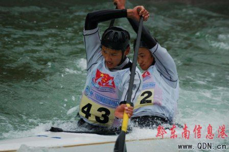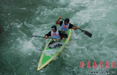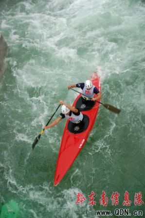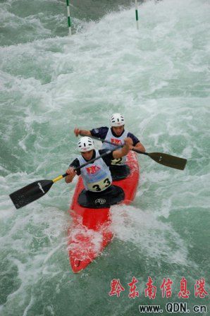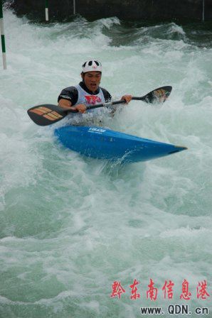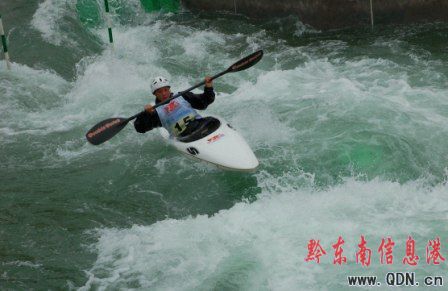 圖片新聞(記者 潘光銀)11月25日,參賽選手在激流中奮力劃槳。當日,2006年全國皮劃艇激流回旋秋季冠軍賽在黔東南州