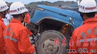 據(jù)介紹,當(dāng)天傍晚,這輛工程車載著泥土準(zhǔn)備出工地,突然車輛駕駛室后部與貨箱之間大梁折斷,駕駛員逃離不及,被斜卡在方向盤與靠背之間,呼吸困難,生命垂危。