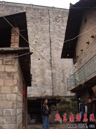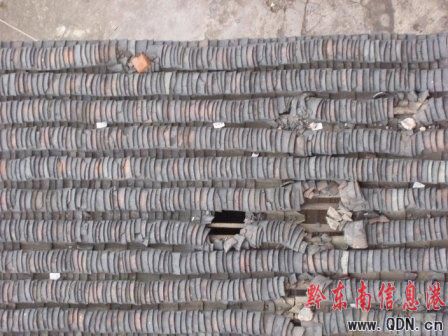 從堡坎處往下看,孫家的房子上多處被砸出了大窟窿,房頂上還積余著很多的磚頭、石塊。
