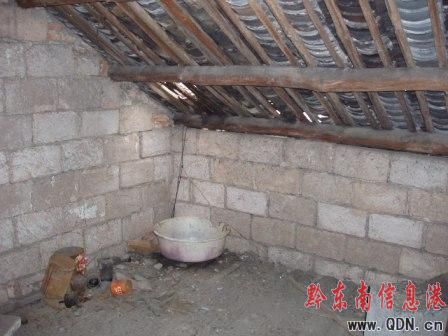 接著,孫成芝帶記者到了二樓。老人說,由于經常被砸,房屋漏水嚴重,二樓已經許久不住人了,只拿來放置一些閑置物品。上面還有間小小的暗閣,記者上到小閣樓上看到,光線從那些被砸的地方折進來,地上零散地放著特意用來接水的盆。