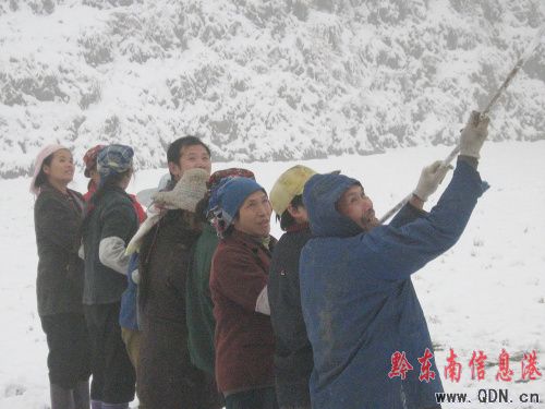 25日,在大稼鄉竹山村附近的一個村子,記者看到男女老少數十人在用在斷桿處麻繩牽引一臺變壓器。原來,這個村的一個臺變被嚴重摧毀,村民們看到搶修人員忙碌地穿梭于田間地頭,深受感動,男女老幼一齊上陣,有的挖桿窩,有的拉導線,有的幫忙收拾剛從斷桿上拆下的斷線。眼前的奔走的人群、晃動的身影使空氣仿佛變得暖和起來。