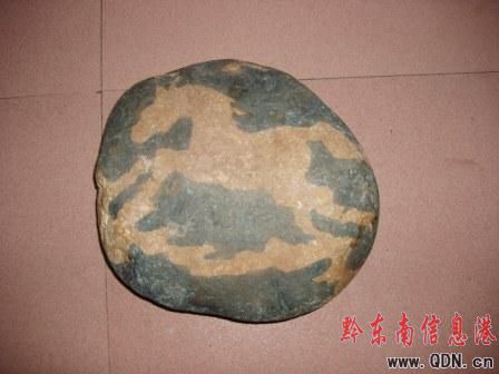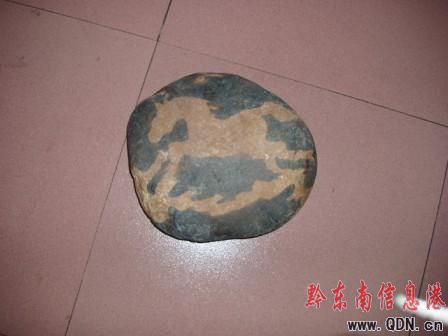 該奇石為青底黃紋,重約12公斤(比普通石頭重),一匹飛馬躍然石頭上,唯妙唯肖,形象逼真,酷似“馬踏飛燕”。