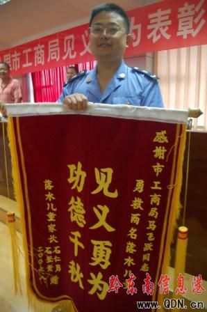 8月17日,凱里市工商局召開見義勇為表彰大會,授予該市爐山工商所所長、黨支部書記馬飛躍同志“見義勇為先進個人”榮譽稱號,并進行嘉獎。2007年8月10日,兩名兒童在凱里巴拉河中戲水時不慎被卷入深水激流中,路經此地的馬飛躍見狀,不顧自家安危,一個人跳入激流中,先后將兩兒童營救上岸。(楊衛中 吳如雄)