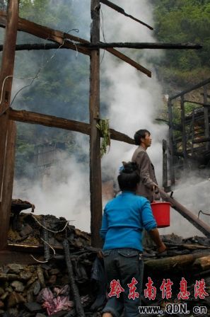 據悉,火災發生后,當地縣政府領導、公安、消防接到報告后很快趕到現場與村民滅火,僅用20分鐘就將燃火撲滅。經消防人員初步調查,火災發生的原因是由于一村民用電不規范,造成導線裸露短路起火引發火災,所幸沒有造成人員傷亡。事發后,當地有關部門及時向受災戶發放救災物品。(吳興權 攝)