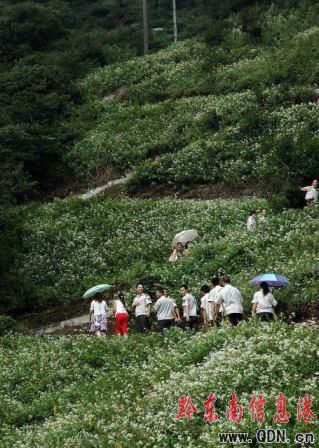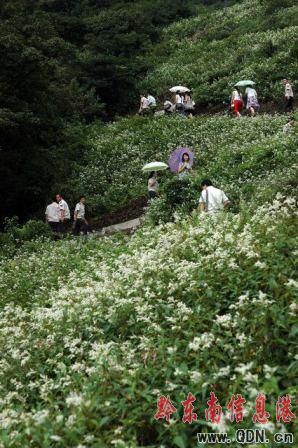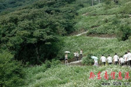 在貴州省國家森林公園雷公山,野花盛開,涼爽宜人。連日來,貴州部分地區出現“秋老虎”天氣,游客紛紛到雷公山上旅游避暑。圖為游客在野花盛開的雷公山上旅游。(特約記者 陳沛亮)