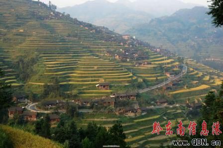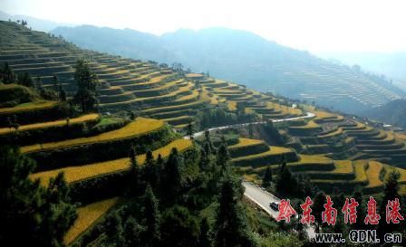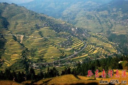 9月23日攝影,金秋時節,位于苗嶺山脈的雷山縣開屯梯田,成片成熟的稻谷把雷公山山脈打扮得金浪翻滾,一派豐收的美景。當地苗族農民正抓緊時機搶收稻谷,確保顆粒歸倉。(特約記者 陳沛亮 攝影報道)