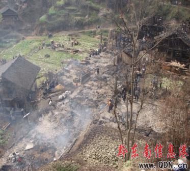 經初步調查了解,此次火災是一村民在家中點臘燭祭祖所導致,大災共燒毀房屋9棟33間,受災戶數19戶,緊急破拆4戶,共計受災105人,燒毀稻谷29900斤,直接經濟損失89746.2萬元,所幸無人員傷亡。