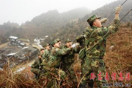 本港訊 駐渝某部官兵奉命到錦屏侗鄉搶修供電設施,子弟兵爬冰臥雪,為保證錦屏各鄉鎮盡快通電而奉獻在大山深處。(楊秀廷)