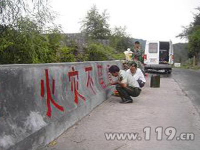 近日來,錦屏縣消防部門在錦屏縣縣委、縣政府的領導下,對消防安全宣傳工作進行專題部署,于7月底前在城區各主要街道、路口、重點單位門口、各鄉鎮所在地和主要交通要道兩旁刷固定消防宣傳標語。錦屏縣消防部門根據安排積極行動,迅速開展噴刷消防安全宣傳標語活動。到目前為止,錦屏縣消防部門在城區各主要街道、路口、重點單位門口、各鄉鎮所在地和主要交通要道兩旁刷固定消防宣傳標語20余幅,大大推動了消防宣傳“五進”活動的深入開展,以實際行動為奧運會勝利召開保駕護航。