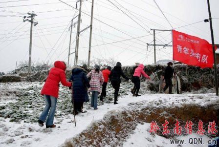 剛開始“娘子兵團”對著白雪皚皚的山路還覺得心情舒暢,但隨著氣溫的逐漸降低天上飄著的凍雨很快將她們的頭發(fā)淋得濕漉漉的,加上環(huán)境變得越來越復(fù)雜,在走過羊腸小道,翻山越嶺后,她們很快感覺不適宜了,開始手腳并用了。