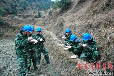 于是,熊熊篝火燃燒起來了,鐵鍋架起來了,熱騰騰的年夜飯做好了,杯杯米酒中,聲聲祝福里,搶險隊和獨山人民吃了一頓特殊的年夜飯。