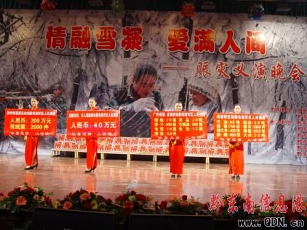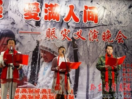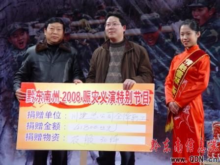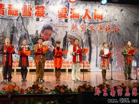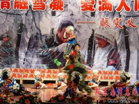 由黔東南州委、州人民政府、中共黔東南州委宣傳部主辦,黔東南州民政局、文化局、廣電局等8家單位承辦的“‘情融雪凝·愛滿人間’2008賑災義演文藝晚會”在