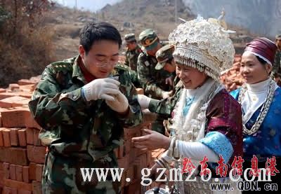 “只要娃兒們能盡快在新教室上課,累也值得。”代理排長鄭陸軍是個大高個,力氣也大,他扛起100斤重的袋裝水泥奔跑著如“草上飛”,盡管汗水模糊了雙眼,他也沒哼一聲。戰士吳飛、莊齊海在扛水泥的行列中,盡管身體偏瘦,但一點都不遜色,跌倒了再爬起,爬起了又繼續扛,幾趟下來,溢出袋外的水泥與汗水,很快將兩人變成了“水泥人”,像塑像一般。在挖基腳現場,平時使慣了“紅水龍”的官兵們顯得有點生疏,但在施工人員的教授下,1米多深的基腳很快挖開了10多米。