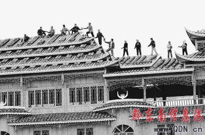 冰凍災害過后,貴州凱里市三棵樹鎮苗族群眾正搶抓時間為自家受損的房屋進行蓋瓦撿漏,營造優良旅游環境,迎接游客到來。(陳沛亮攝 )
