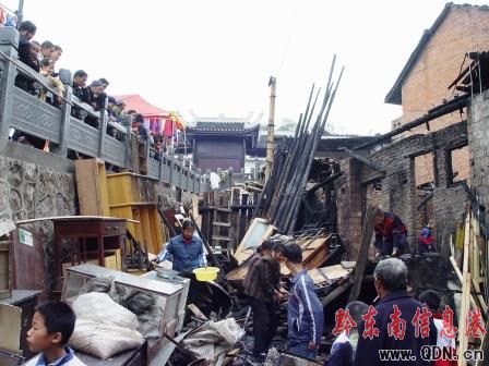 據受災民眾介紹,13日凌晨3時30分左右,他們還在睡夢中,突然聽到外面有人在猛敲他家門喊找水。“當時我還以為是小偷,不敢開門,后來才曉得是上坎的倪大爺在喊我們快起床救火。”倪大爺是居住在凱里老街萬壽宮旁邊的抗美援朝退伍老兵,原名倪代隆,抗戰中曾負過傷,至今未愈,退伍后他和戰友(已故)就一直居住在凱里老街。據倪老介紹,火災當晚他正在睡夢中,突然就被吵鬧聲驚醒了,他以為是有小偷,就趕忙從床鋪上爬起來,當他急匆匆跑出家門的時候,整個人都嚇傻了,只見距離他不到10米遠的地面上火光沖天,“噼啪”、“噼啪”的炸響聲和房屋的垮踏聲不絕于耳。他還發現有幾人正在他的屋頂上走動,原來這是從起火民房里逃出來的居民,因為火大,而且此前通道已經被堵,所以只有爬上房頂逃生。