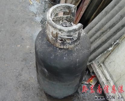 火災中燒毀的液化氣罐
