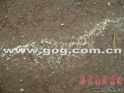 4月13日上午,凱里、麻江等地市民致電記者,稱連日降雨之后,兩地部分地面上出現不少黃色的粉末。在麻江縣的徐先生說,在麻江縣城人流較少的五星路上特別明顯,路過市民很驚詫,他懷疑這是天降酸雨造成的。