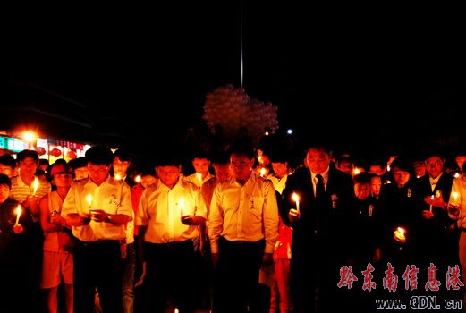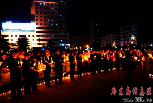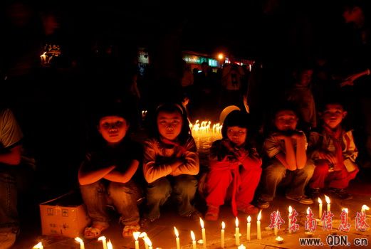 在現場,上千根點燃的蠟燭圍成“心”字型,中間是蠟燭拼成的“5.12”幾個數字,提醒人們永遠不要忘記這個國難的日子——5月12日,中國的四川汶川縣發生8.0級大地震,奪去數萬人的生命。不到10分鐘,已經有上千名