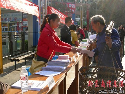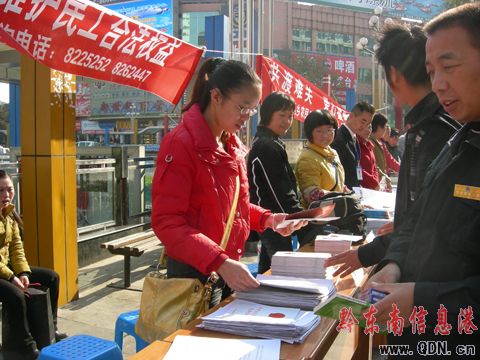 自國(guó)際金融危機(jī)暴發(fā)以來,我國(guó)一些企業(yè)處于停產(chǎn)或大量裁員的狀態(tài),從而導(dǎo)致部分農(nóng)民工失業(yè)返鄉(xiāng)。12月3日上午,凱里市大十字街道、人事勞動(dòng)和社會(huì)保障局在大十字中心設(shè)立返鄉(xiāng)農(nóng)民工咨詢服務(wù)點(diǎn),向廣大市民發(fā)放中華人民共和國(guó)勞動(dòng)合同法、就業(yè)促進(jìn)法等法律法規(guī)手冊(cè)。為切實(shí)做好返鄉(xiāng)農(nóng)民工的再就業(yè)做好準(zhǔn)備。(楊懿 攝影報(bào)道)