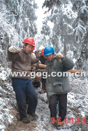 金黔在線 凝凍災害給黔東南電網造成極大破壞。在災害面前,廣大電力職工在當地黨委、政府的大力支持下,組織了近5000人投入抗冰搶險保供電工作。到1月31日,
