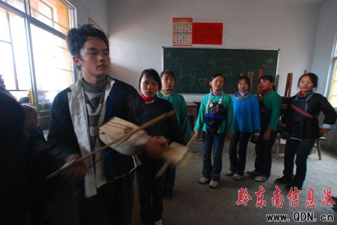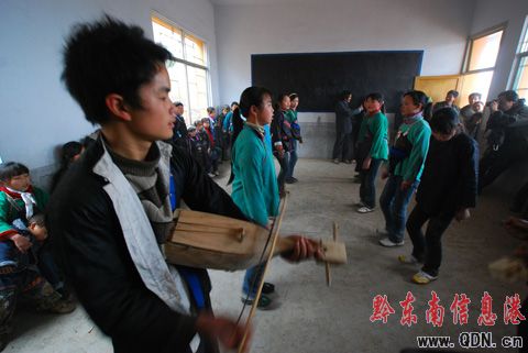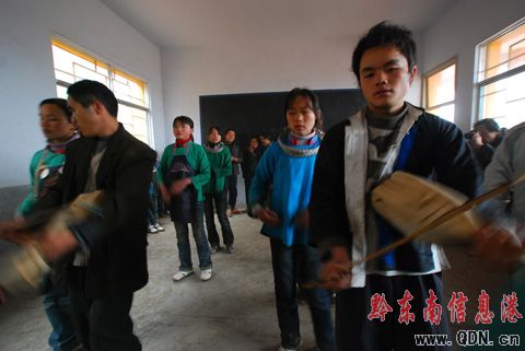 本港訊 2009年2月4日,丹寨縣雅灰鄉(xiāng)送隴村的苗族學(xué)生們集中在一起練習(xí)跳古瓢舞準(zhǔn)備參加村里舉辦的比賽。雅灰鄉(xiāng)送隴村是貴州省非物質(zhì)文化遺產(chǎn)“苗族古瓢舞”的起源地,跳古瓢舞一直以來都是當(dāng)?shù)卮迕裣矏鄣膴蕵坊顒樱陙恚呕亦l(xiāng)還把這一古老的民族舞蹈引進(jìn)課堂,成為每一名學(xué)生的必修課,使這種古老的民族舞蹈得以代代相傳。(黃曉海 攝影報(bào)道)