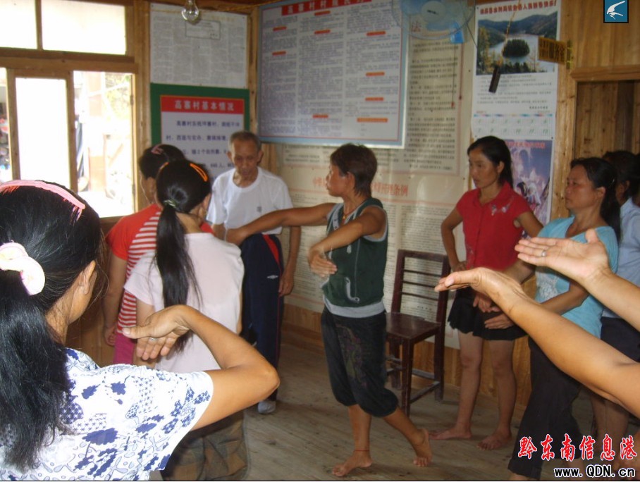 本港訊 (特派記者 李斌 攝影報道)8月23日,錦屏縣老齡委宣傳員、抗美援朝老兵李茂清老人,在得知家鄉鐘靈鄉高寨成立文藝宣傳隊不久后,主動給高寨文藝宣傳隊捐款500元購買音響,同時還購買歌舞光碟,冒著酷暑送到家鄉文藝宣傳隊,并給宣傳隊員進行示范和指導。圖為錦屏縣老齡委宣傳員、抗美援朝老兵李茂清老人正在家鄉文藝宣傳隊進行示范和指導的情景。