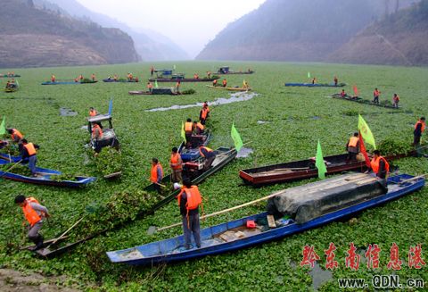 本港訊 2006年1月,三板溪水電站下閘蓄水形成庫區以來,整個庫區以浮萍及水葫蘆為主的各種漂浮物污染成了令人頭痛的問題。每個到庫區旅游的游客無不大跌眼鏡,連呼上當,認為不是來此享受清爽,而是來此接受心靈污染。