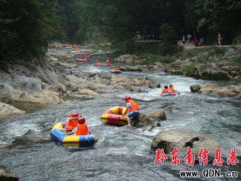高過河景區屬國家級風景名勝區氵舞陽河的一個子景區,地處鎮遠縣西北部,距縣城34公里,2000年被列為省級風景名勝區。2007年以來,經過貴州青酒集團不斷的開發建設,于今年8月正式開放。景區主要由原始森林峽谷、深潭、險灘、飛瀑和激流構成,集漂流、游船觀光、步行觀光、探險旅游、度假避暑為一體,被業內人士稱為“休閑勝地、度假天堂”。