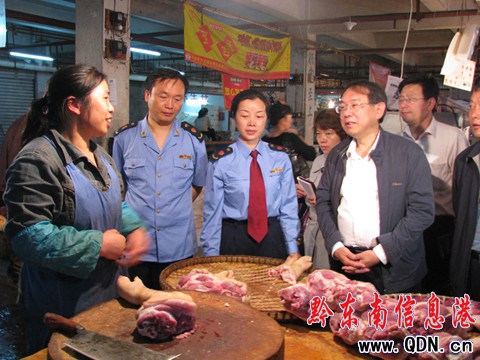 據(jù)介紹,檢查組一行先后視察了凱里市永樂商場和凱里市佳惠超市東方店。檢查中,謝慶生副省長多次停留在食肉、蛋禽、蔬菜攤區(qū),向經(jīng)營戶詳細了解食肉、蔬菜的供應、價格、經(jīng)營戶的盈利等情況,并仔細查看了食肉檢疫票。他對凱里市市場貨源充足、品種繁多、價格穩(wěn)定非常滿意,特別是對設置在市場內(nèi)的農(nóng)藥殘留快速檢測室給予了高度評價,充分肯定了工商部門在市場監(jiān)管中的作用和成績。