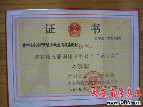 只有初中文 化的他,勤奮好學,善于研究,對待事情極其認真。就是這種態度,讓他在以后的中藥研究事業中,碩果累累。到2007年共獲得了,包括中醫治療甲亢病、中醫治療椎間盤突出、骨質增生等,5項發明專利(其中,中藥治療椎間盤突出已進入實審階段)。