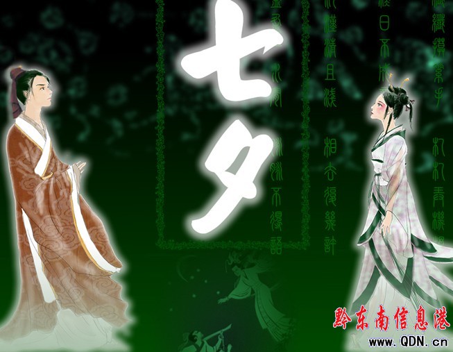 每年農歷的七月七日,即七夕,又稱乞巧節,這個傳說和牛郎,織女的神話傳說有十分密切的關系。 七夕節始終和牛郎織女的傳說相連,這是一個很美麗的,千古流傳的愛情故事,成為我國四大民間愛情傳說之一 。后來因為有了牛郎織女的故事,每到農歷七月初七,相傳牛郎織女鵲橋相會的日子,姑娘們就會來到花前月下,抬頭仰望星空,尋找銀河兩邊的牛郎星和織女星,希望能看到他們一年一度的相會,乞求上天能讓自己能象織女那樣心靈手巧,祈禱自己能有如意稱心的美滿婚姻,由此形成了七夕節。