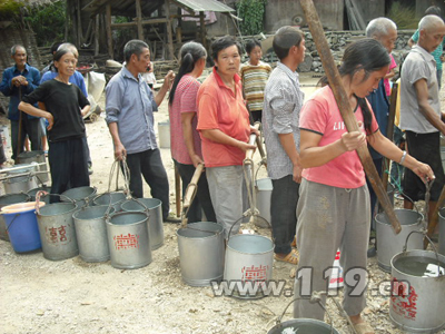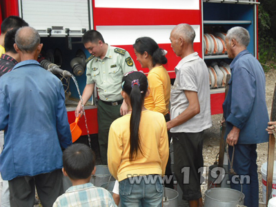 岑鞏縣消防大隊得知詳細情況后在確保執勤備戰的基礎上,立即抽調人員迅速調派一臺水罐車多次往返長沖村為該村村民送去干凈的生活用水20余噸,把該村100余戶群眾家中的水缸、水桶、盆、小水窖以及村寨中三口干涸的枯井裝得滿滿的,有效地緩解了群眾生產生活用水短缺的困難。