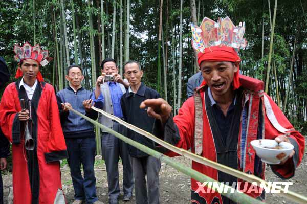 岑鞏:特色“儺”文化(組圖) 5月24日,貴州岑鞏民間儺戲藝人在竹林間進行儺戲表演。 據(jù)悉,貴州岑鞏縣的“儺”文化內(nèi)涵豐富,有上千年歷史。岑鞏縣有“儺”文化民間藝人數(shù)百人,“儺”技表演節(jié)目主要有“上刀梯”...