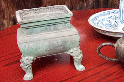 據黃平縣宣傳部門介紹,該鼎為四方型,四腳,銅綠色,高16厘米,腰圍44厘米,鼎上雕刻有各種花鳥圖案,美觀精致。收藏人稱,該鼎系且蘭王祭祀祈禱所用。