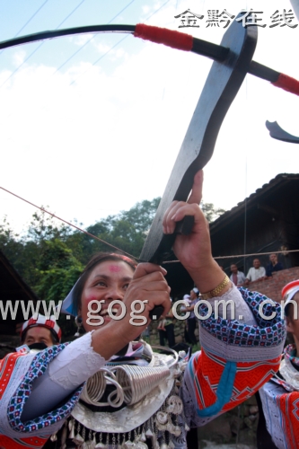 據(jù)金黔在線消息 在貴州重安江兩岸的貴州省黃平縣和凱里市一帶,集居一支鮮為人知的弓箭部落群體,他們就是自稱為“哥摩”的亻革家人。史料記載中多稱他們?yōu)椤柏楦锒怠弊澹缈平缣┒焚M(fèi)孝通先生早在1952年就撰文指出:“亻革兜是一個(gè)民族,是少數(shù)民族中之少數(shù),是古代僚族的后代。” 8月9日,記者來(lái)到位于黃平縣重興鄉(xiāng)望壩村的亻革家村寨,用短暫的時(shí)間領(lǐng)略了神秘的苗家風(fēng)情。