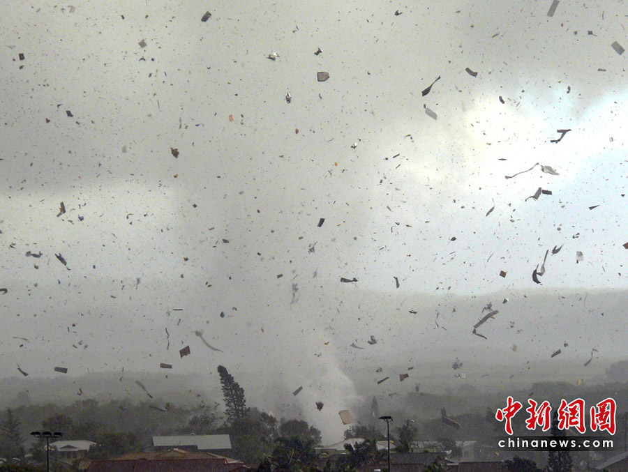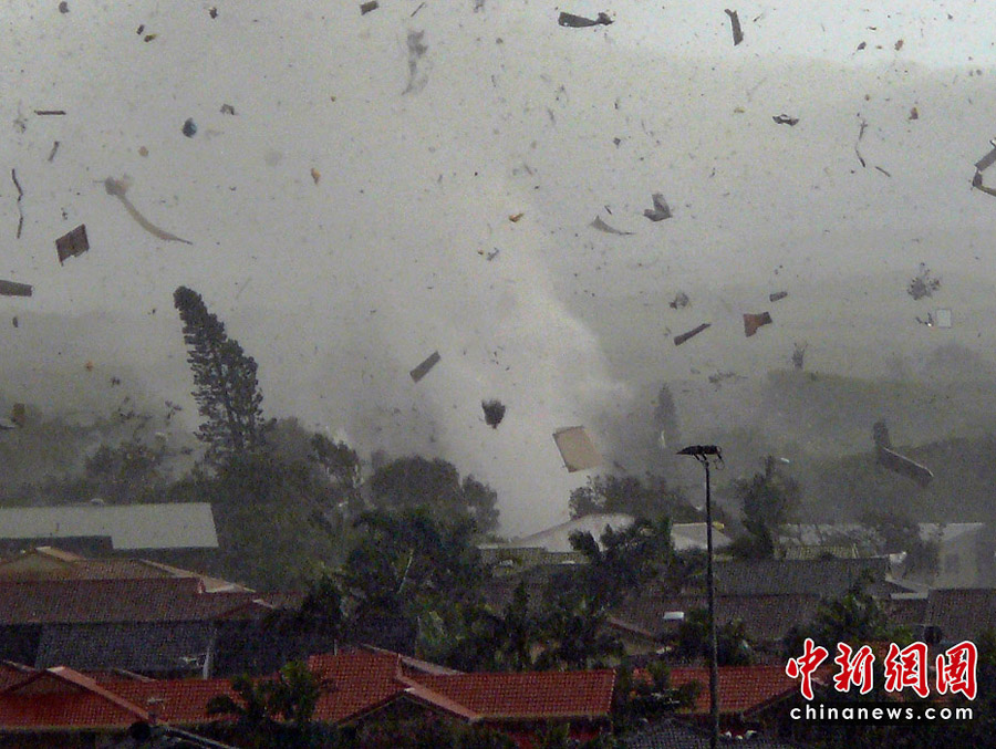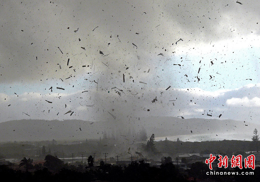 6月3日,澳大利亞新南威爾士州海濱城鎮倫諾克斯黑德遭到龍卷風襲擊,大樹被連根拔起,屋頂被掀翻,重型拖車也被拋到半空中。數千所民居停電。一共有12所房屋在這場龍卷風中被摧毀,6人受傷,傷勢不重。所幸沒有人員死亡的報告。圖片來源:中國新聞網