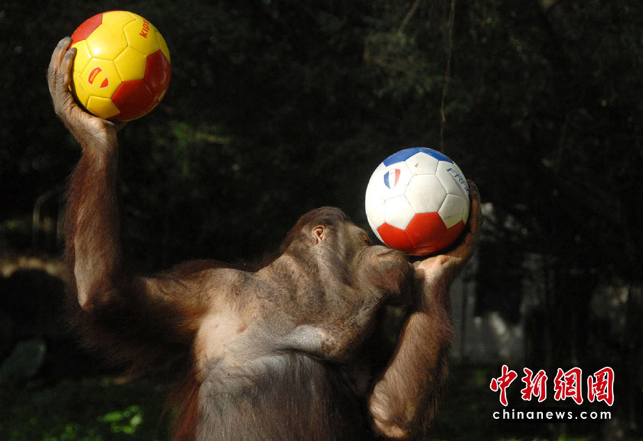 2010年南非世界杯六月底正在如火如荼地進(jìn)行,人們?cè)俅闻d起一輪熱愛足球的浪潮。居住在深圳野生動(dòng)物園里的動(dòng)物們也不甘落后,它們也紛紛玩起足球過把癮。