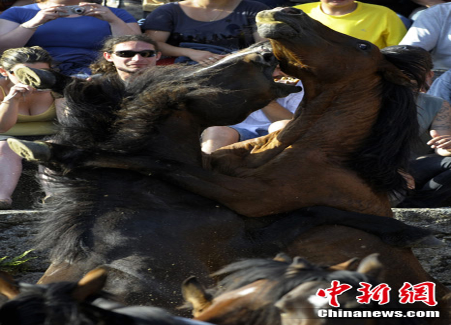 當地時間7月3日,西班牙薩武塞多,年輕人在傳統的“捕野馬節”上馴服野馬。作為古老的加利西亞節日,捕野馬節可以追溯到青銅時代的馴獸練習。