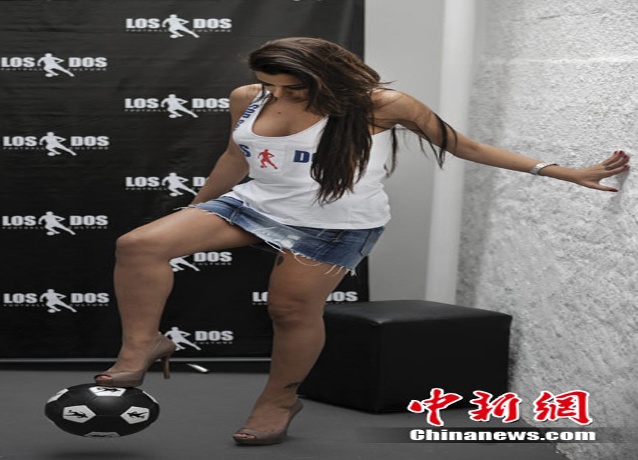 近日,在南非世界杯期間名聲鵲起的巴拉圭“乳神”女球迷拉里薩·里克爾梅,來到巴西圣保羅拍攝一款廣告,并在現場小秀了一下球技。