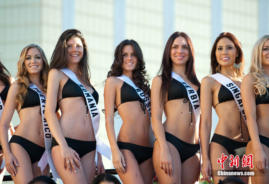 近日,2010環球小姐候選佳麗們現身賭城拉斯維加斯,眾佳麗身穿比基尼上陣,大秀美艷。