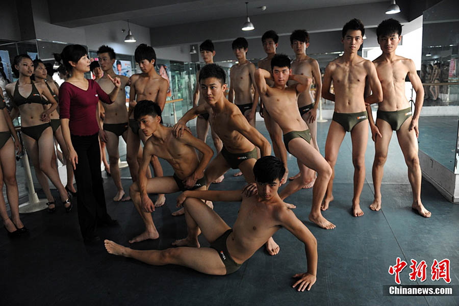 8月19日,山東一模特培訓學校內,準備參加2011年高考藝術類專業考試的80名高三學生們正在接受專業形體培訓。來自山東、河南等地的80多名高三學生,在這里接受4個月的專業培訓后,將參加2011年高考藝術類模特、空乘及相關專業的考試。